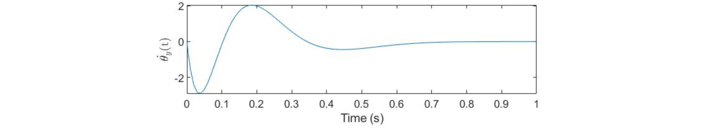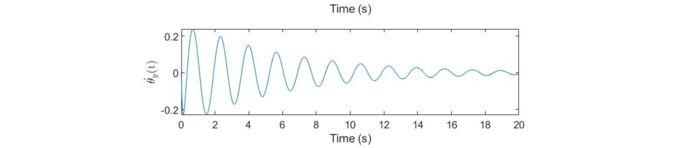Note the significantly lower timescale of the response from the calculated k values (~0.6s to steady state) when compared to the response from the given k values (~15s to steady state)- this is much more ideal for the platform because the ball will be balanced in about 3 "tilts" rather than almost 20 "tilts." This will reduce the load on the motors when balancing the ball, and will allow the system to respond dynamically to various new stimuli, like a hand moving the ball after balancing, or the platform getting hit, causing the ball to move. Additionally, the maximum angle of tilt for the calcualted k values (~11 degrees), while greater than the maximum angle of tilt for the given k values by about 3 times, is still reasonably small such that the linear state space model remains accurate. Additionally, the angular velocity of the platform, while much greater for the calculated k values, is still low enough (in magnitude) at maxima and minima that the platform should be able to handle these speeds.